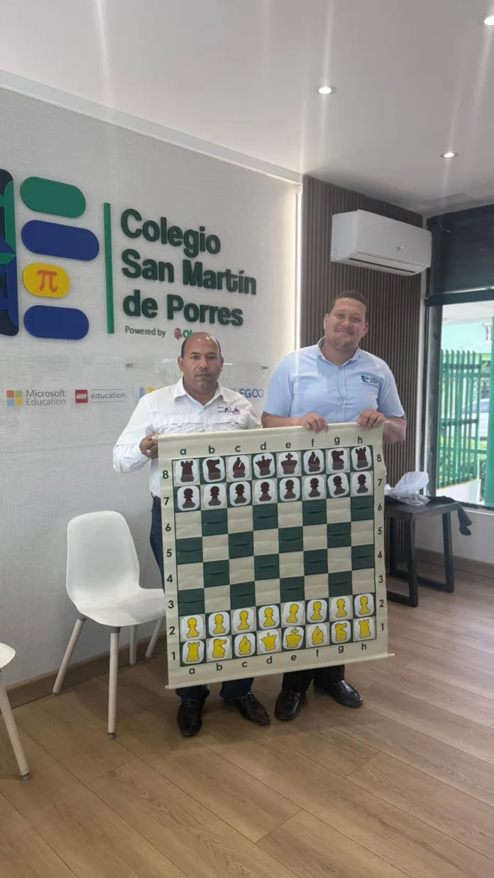 La Federación Dominicana de Ajedrez y el Instituto Nacional de Educación Física (INEFI) realizaron la entrega de una pizarra de ajedrez al Colegio San Martín de Porres de Santo Domingo Este, como parte de su compromiso con la promoción del ajedrez en las instituciones educativas.