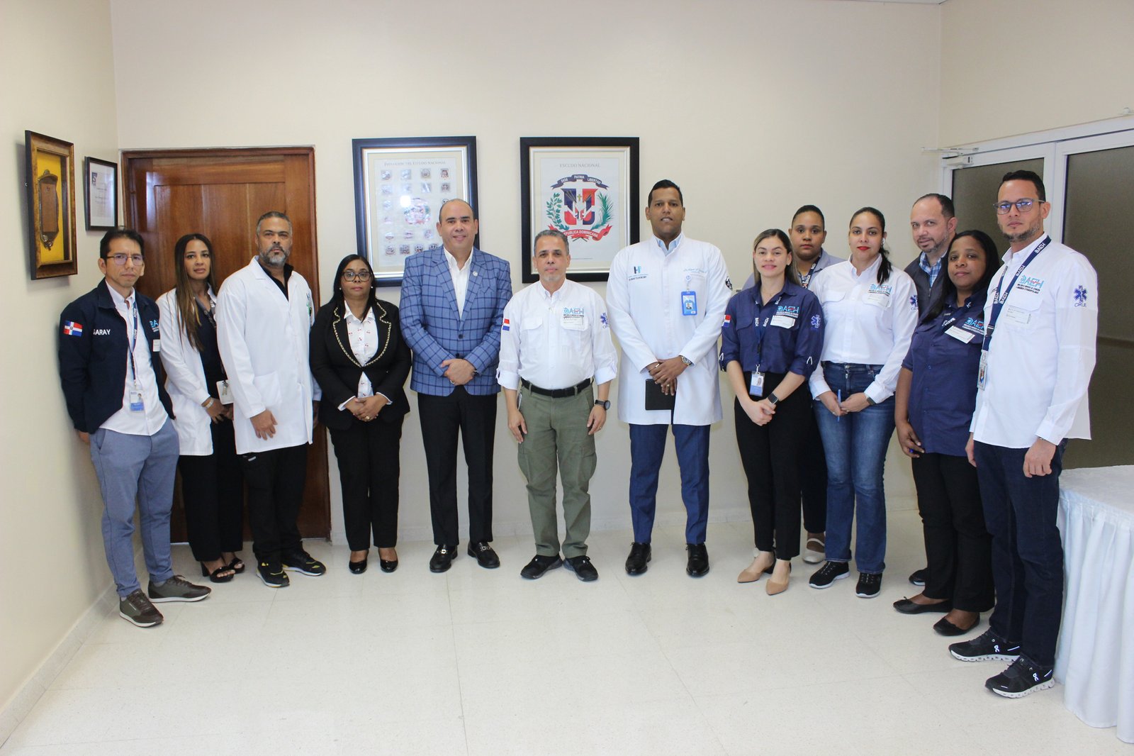 SANTO DOMINGO.– El director del Hospital Universitario Docente Traumatológico Dr. Ney Arias Lora, doctor Víctor Rosario Suazo, y el director del Hospital General y de Especialidades Dr. Mario Tolentino Dipp, doctor Miguel Ángel Guzmán Fermín, sostuvieron un encuentro de trabajo junto a directivos de la Dirección de Servicios de Atención a Emergencias Extrahospitalarias (DAEH), encabezados por Ruddy De Gracia, con el objetivo de fortalecer el proceso de traslado de pacientes entre centros de salud.