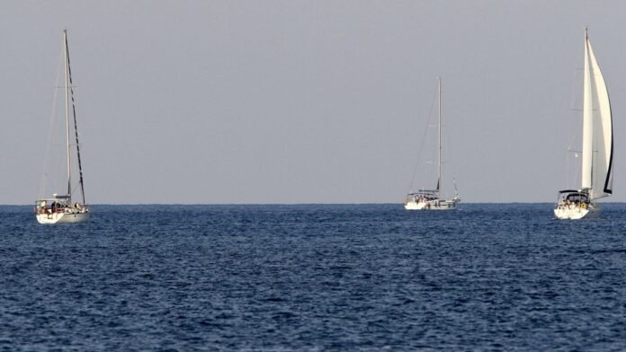 Activistas a bordo de la flotilla Global Sumud que navega hacia Gaza, el 1 de octubre de 2025.